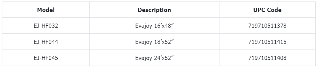 In cooperation with the U.S. Consumer Product Safety Commission, Shenzhen Danya Tech Co., Ltd. d/b/a Evajoy is voluntarily recalling the below above-ground pool models 48 inches and taller that have compression straps that surround the outside of the pool legs, which a child may use as a foothold to gain access to the pool, posing a drowning risk. The below models are being recalled: